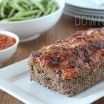 Place in the oven and cook for one hour. When done, remove the meatloaf. You'll notice juice has pooled along the sides of the pan. Simply tilt the meatloaf while still in the loaf pan to drain the juice before serving.