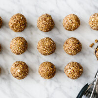 - The balls will be a little soft when you first roll them, but they'll firm up as the oats absorb the maple syrup.